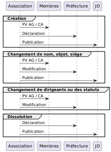Pour être reconnue des partenaires publics, l’association doit être déclarée et publiée au JO (Journal Officiel). Tout au long de sa vie, la personne morale attachée à l'association déclarée, doit respecter quelques démarches officielles détaillées ci-dessous :